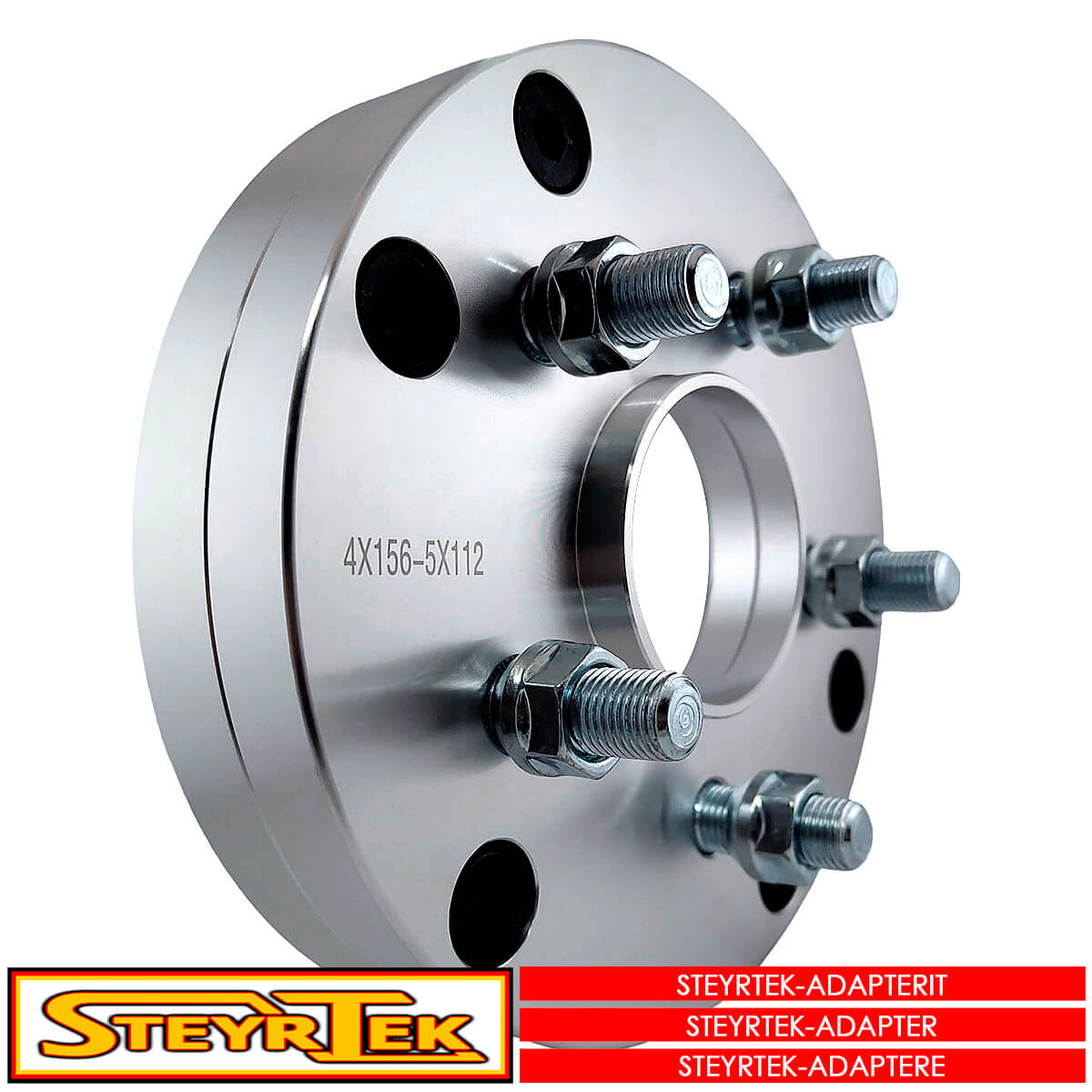 Tällä adapterilla sovitat 5×112 jaolla olevat vanteet 4×156 jaolla olevaan mönkijään. Samalla tuot vannetta 51mm ulospäin eli pienennät ET:tä. Huippuluokan alumiinia SteyrTekiltä.